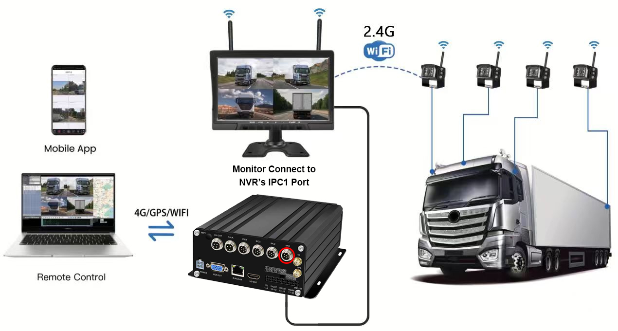 Extra 3 csatornás vezetékes IP kamera bemenetekCarleader 10,1 hüvelykes 7 csatornás vezeték nélküli HDD mobil NVR rendszer, egy élvonalbeli mobil vezeték nélküli NVR rendszer, amelyet flottakezelésre terveztek. A rendszer 4 db vezeték nélküli IP-kamerát használ, párosítva egy 10,1 hüvelykes vezeték nélküli relés monitorral 2,4 GHz-es jellel, majd csatlakoztassa a relémonitort és az NVR IPC portot 6 PIN-es légiközlekedési csatlakozón keresztül, valamint támogatja az extra 3 csatornás vezetékes IP kamera bemeneteket is.