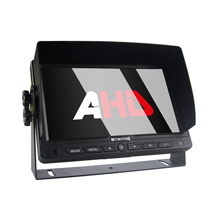 Karvezető 7 hüvelykes 2 csatornás AHD bemenetű jármű tolató monitor, nagy felbontású AHD járműmonitor, amely ideális nehéz tehergépjárművekhez, mint pl.teherautó, busz, lakóautó, pótkocsi, mezőgazdasági jármű és építőipari jármű stb. 7 hüvelykes új digitális panel és 16:9 képarány 1024 x 600 (RGB) felbontással tiszta és biztonságos vezetési élményt kínál a vezetőnek.
