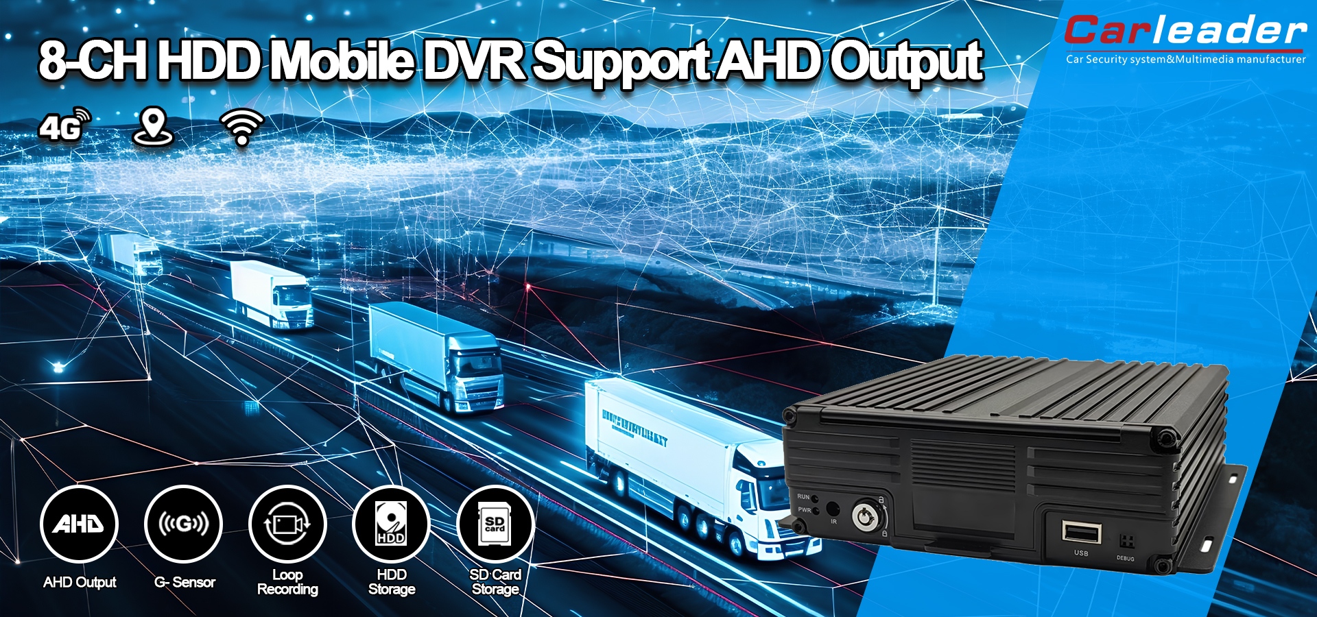Karvezető8CH 1080P HDD mobil DVR támogatás AHD kimenet Ideális flottakezeléshez és nyomon követéshez, tömegközlekedés biztonságához, rendészeti és sürgősségi járművekhez, logisztikához és teherszállításhoz, magán- és haszongépjárművek biztonságához